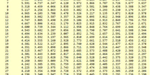 مقادیر کاربردی آزمون F جهت بررسی نتایج آزمون های f tets می تواند از مقادیر بحرانی آزمون F در سطح