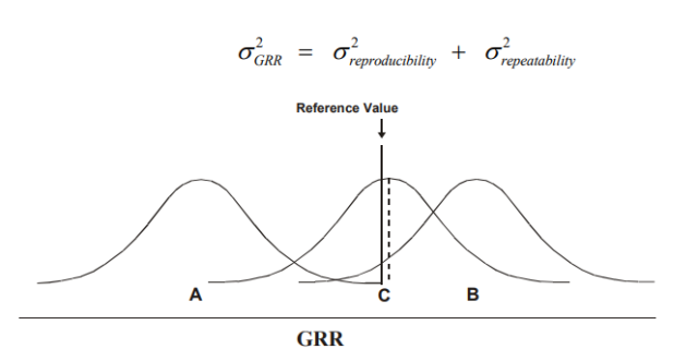 Gage R&R تخمینی از تنوع ترکیبی تکرارپذیری و تجدید پذیری است. به روشی دیگر، GRR واریانس برابر با مجموع واریانس